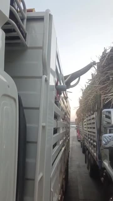 The trucker spotted the ravenous tusker grabbing the stalks from another lorry while they were waiting at a red light in Surin, Thailand. 2025-06-04 21:24:04