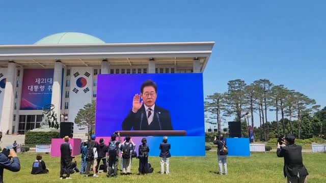 Footage shows the new liberal President Lee Jae-myung from the Democratic Party taking his oath at the National Assembly building in Seoul on June 4. 2025-06-04 21:00:11