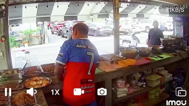 CCTV footage shows curry shop owner Pavaris Pomsing looking at his phone while a customer selects a dish from the trays in Pathum Thani, Thailand, on October 2. 2025-06-04 03:15:00
