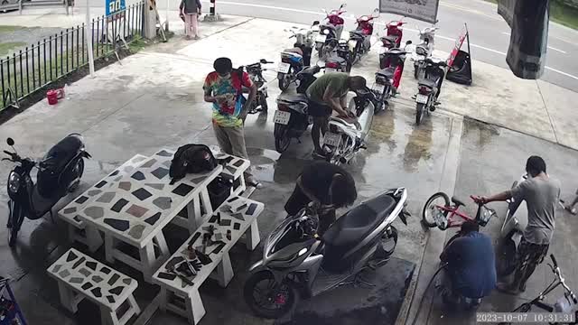 CCTV footage shows the customer holding the two-wheeler's handlebars while a worker pumped air onto it before a loud pop was heard in Chonburi province, Thailand, on October 7. 2025-06-04 03:45:00