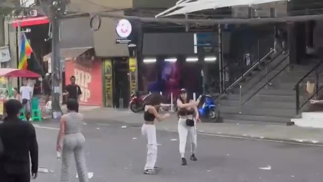 Footage shows the woman, in a black top and grey sweatpants, being chased by a male crossdresser. They were then seen brawling along the notorious Soi Bangla nightlife strip in the early hours of the morning on June 3. 2025-06-04 12:36:40