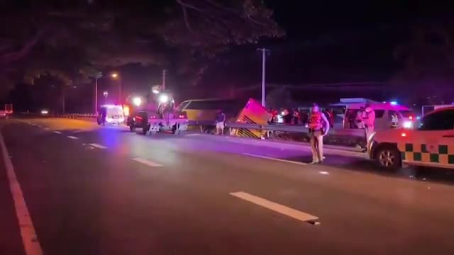 The yellow coach spun out of control when the driver Thotsaporn, 51, allegedly fell asleep at the wheel in Prachuap Khiri Khan, on June 4. 2025-06-04 14:03:49