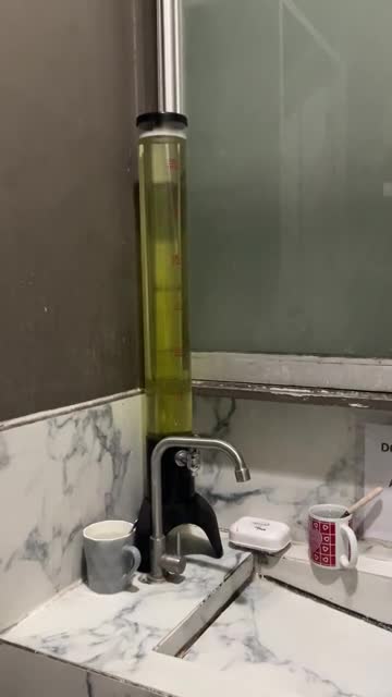 Footage shows the beverage container filled with yellow liquid hand soap sitting in the corner of the sink in Central Visayas, the Philippines. 2025-06-03 13:54:34