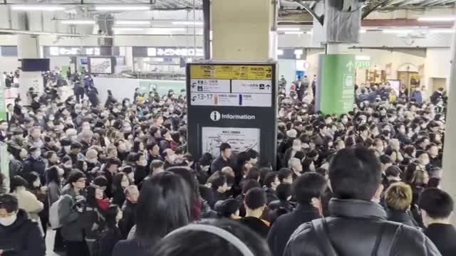 Footage shows hundreds of passengers pressed shoulder to shoulder around ticket gates, escalators, barriers, and information boards inside Ueno Station on January 16. 2026-01-19 13:29:12