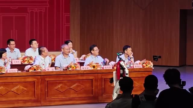 Footage shows Shuang Shuang, the automaton, marching toward the stage carrying an empty tote bag at the 25th Shuangshi High School graduation in Fujian, China. 2025-07-08 09:05:01