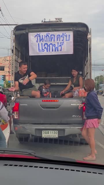 Heartwarming dashcam footage shows the generous parents of the birthday boy handing out meals on the roadside in Saraburi, Thailand. 2025-07-08 02:45:00