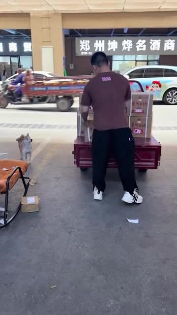 Footage shows theShiba Inu hopping onto a three-wheeler loaded with boxes after the delivery man finished stacking the containers in Henan. 2025-07-05 02:30:00