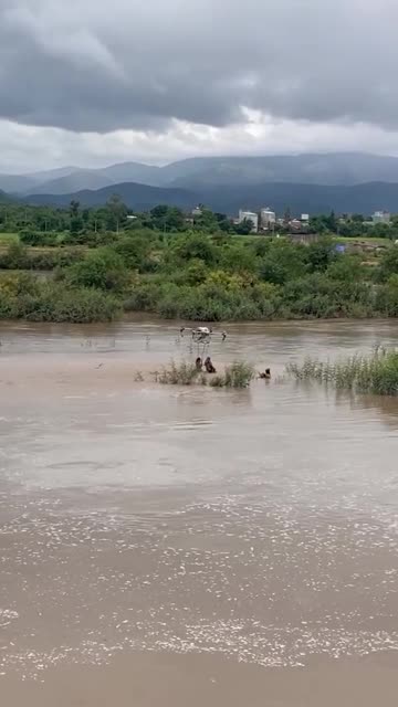 Three youngsters became stranded in rising waters after herding cows and crossing the Ba River in Ia Tul commune, Gia Lai, Vietnam, on July 3. 2025-07-04 16:57:31