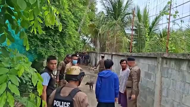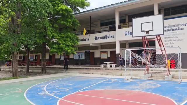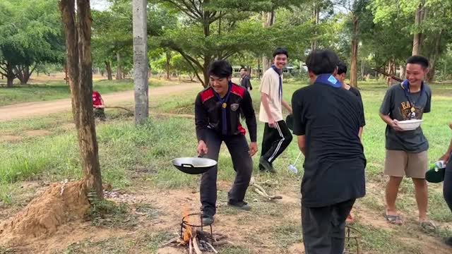 Footage shows the youngster using a cable tie to fix the cylindrical containers bought from the market together - three on the bottom and two on top - to create the DIY cat condo in Uthai Thani, Thailand.