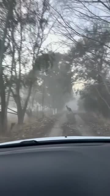 Footage shows Chinese holidaymakers navigating a misty forested area when they spotted the marsupial standing in the middle of a narrow road in Canberra, Australia. 2025-09-14 03:30:00