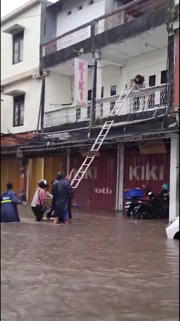 Footage shows an emergency responder climbing the structure with others assisting from below, helping to rescue locals trapped in a two-storey home as floodwaters surged through the area on September 10. 2025-09-14 07:25:50