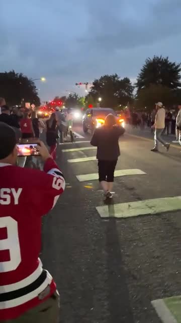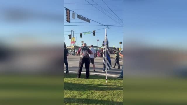 Footage shows locals, including schoolchildren, assembling in front of commercial buildings as military personnel carrying the American flag marched onto a road in McDonough. 2025-09-13 16:29:56