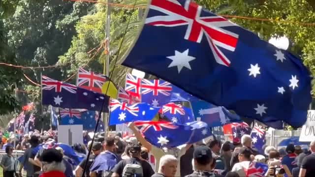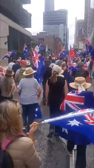 Footage shows a large crowd marching through the streets, with many participants carrying Australian flags and wearing patriotic attire on September 13. 2025-09-13 16:31:47