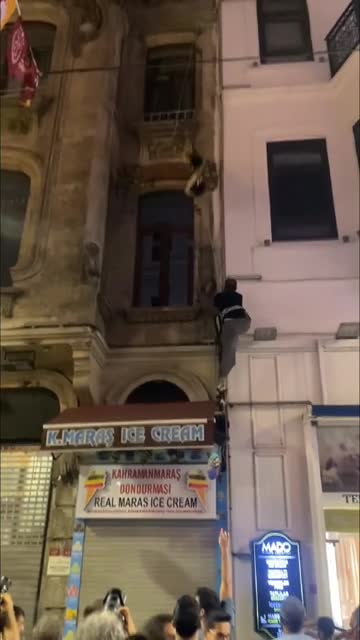 Footage shows an activist scaling a building in Istanbul's Beyoglu district to hang a tevhid flag, a symbol often associated with extremist Islamic fundamentalist group on July 1. 2025-07-02 14:00:33