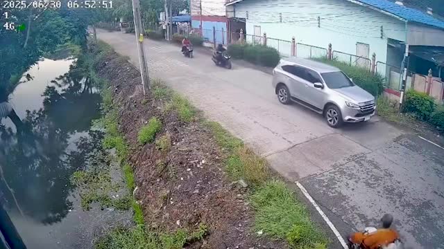 CCTV footage shows the man attempting to mount the two-wheeler when he accidentally twisted the throttle, causing it to surge forward uncontrollably in Acoyapa, Nicaragua. 2025-07-02 20:26:59