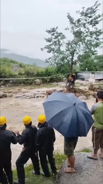 Footage shows kindhearted locals using a rope as a makeshift harness to help the distressed worker in Hpakant, Kachin State, on June 23. 2025-07-02 17:46:57