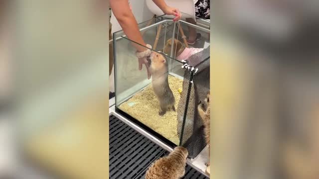 Footage shows the seven-month-old pet rodent named Pornrapa holding the animal cafe worker's arms when she checked inside its cage, refusing to let go in Chonburi province, Thailand, on September 23.