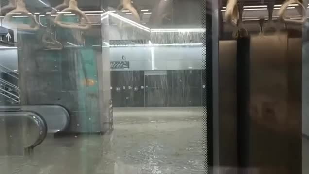 Footage shows floodwaters gushing into Acharya Atre Chowk station on the Aqua Line 3, submerging parts of the under-construction site during an intense downpour on Monday, May 26. 2025-05-27 16:35:03