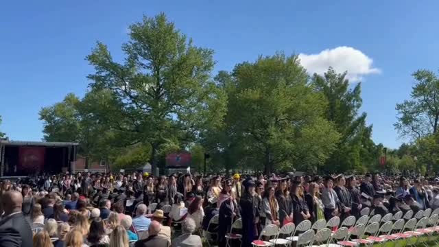 Footage captured by David shows undergraduates at Oberlin College in Ohio turning their backs on the speaker during the event on May 26. 2025-05-27 16:33:02