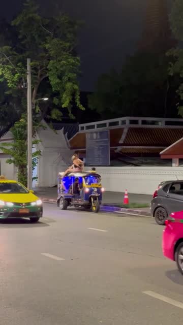 Footage shows a group of tourists stepping out of the vehicle while two of their friends remain seated on top of the three-wheeler at Khao San Road in Thailand. 2025-05-21 17:23:20