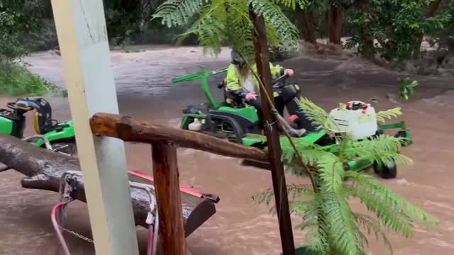 Footage shows the local pulling the equipment to the back of his home, where the deluge had not reached yet in Taree, Australia, on May 21. 2025-05-21 17:49:03