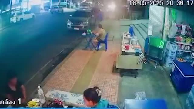 CCTV footage shows the speeding vehicle suddenly veering off course towards a restaurant in Yasothon, northeast Thailand, on May 18. 2025-05-21 16:51:42