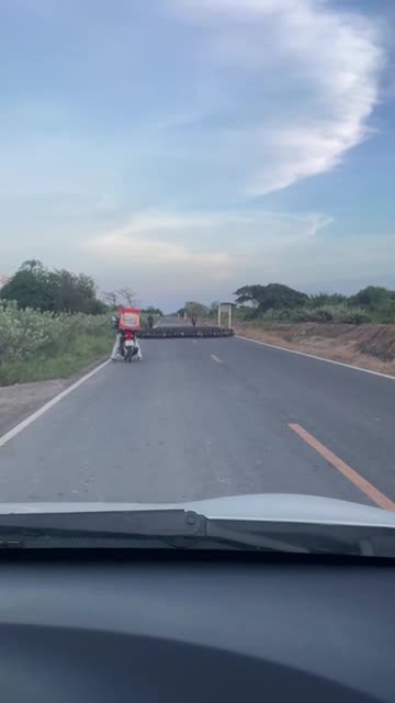 Footage captured by Seyhassneth Heng shows the rider balancing the wooden stool on top of his head while navigating the outer lane of the motorway in Siem Reap, Cambodia. 2025-05-19 22:39:50
