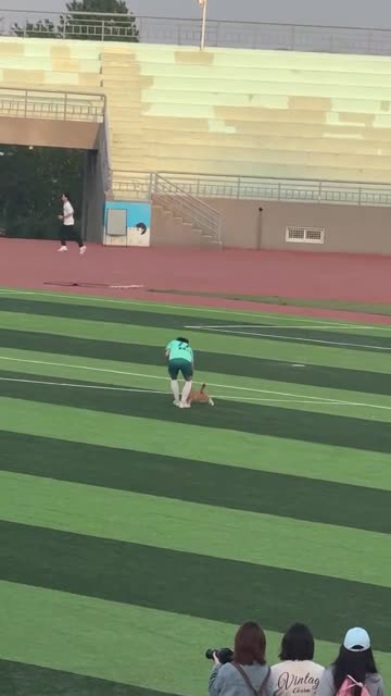 Footage shows Ah Dong, an orange feline, wandering onto the football field during a match at Dalian Minzu University in Liaoning, China. 2025-05-19 22:24:57