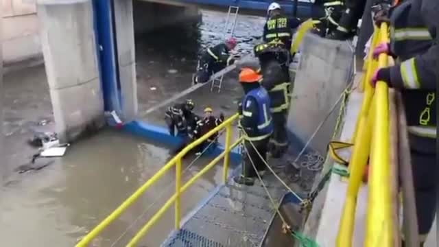 Footage shows emergency responders and volunteers working together at the Manuel Rodriguez Bridge to assist the distressed individual from the fast-moving water. 2025-05-20 10:52:58