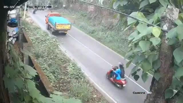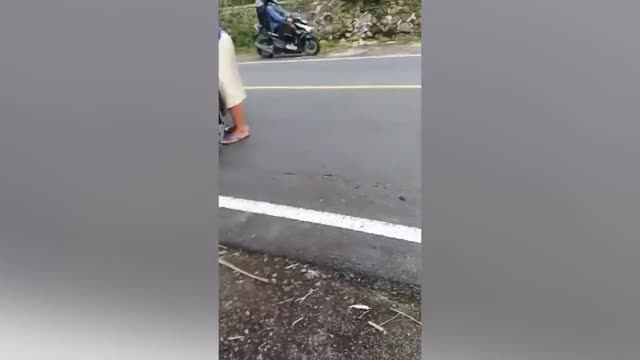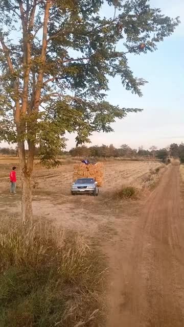 Footage shows the farmer sitting on top of the stack when the vehicle drove through the inclined dirt path in Amnat Charoen, Thailand. 2025-05-17 09:46:14