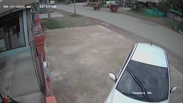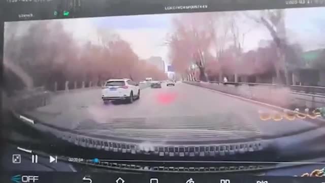 The white sub-SUV was manoeuvring along a road in Zibo, China, when it drove over the metal lid, causing it to launch into the air and strike the four-wheeler behind. 2025-05-17 09:36:27