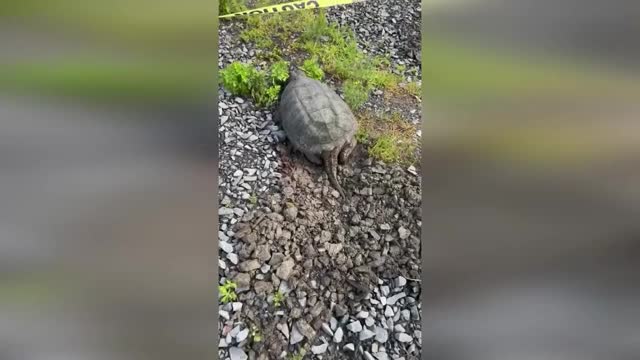 Footage shows the rear end of the turtle slowly covering the eggs she had laid in a nest dug into the soil in New Jersey on May 11. 2025-05-16 18:10:08