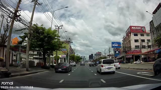 Dashcam footage shows the black vehicle manoeuvring on the other side of the road when a passing car suddenly stopped to let the trucker through in Bangkok, Thailand. 2025-06-19 12:44:12