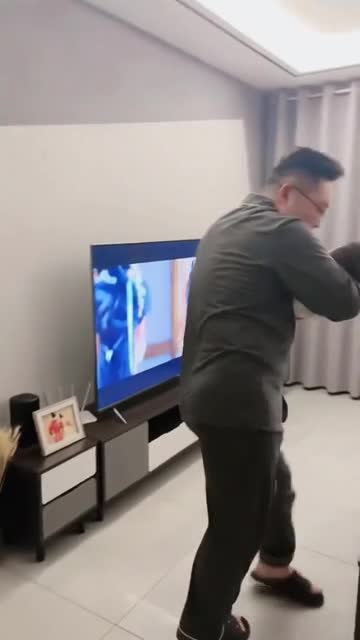 Footage shows the playful father carrying his daughter while swaying to a Latin upbeat song in their living room in Shaanxi, China. 2025-05-14 03:20:00