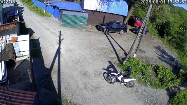 Footage shows the biker slamming head-on into the gate with a loud bang while riding alongside two companions in Gorno-Altaisk, Altai Republic, Russia. 2025-06-17 18:00:30