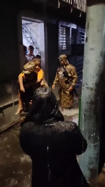 Footage shows emergency workers carrying children on their backs amid heavy rain in the Dario Gonzalez Community in central San Salvador on June 16. 2025-06-17 15:39:14