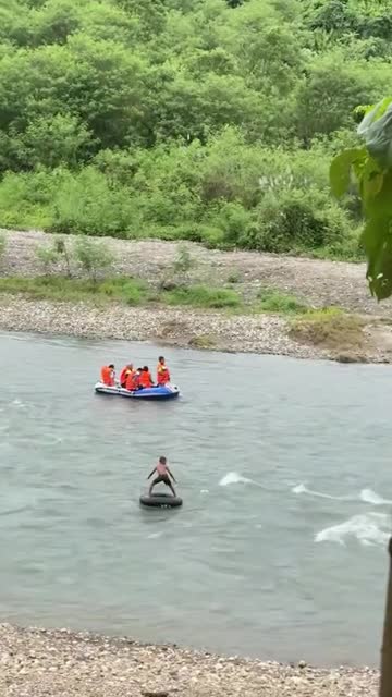 Footage shows 13 family members aboard the red float being pulled through the choppy waters by two guides in Zambales, the Philippines. 2025-06-17 02:00:00