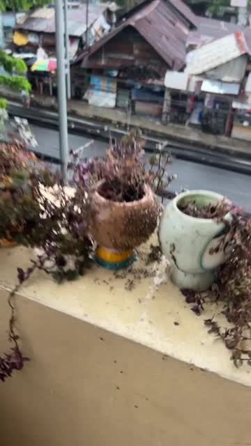 Footage shows the insects each biting a tiny grain of food scrap crawling around the resident's ornamentals in Manila, the Philippines. 2025-06-16 14:40:04