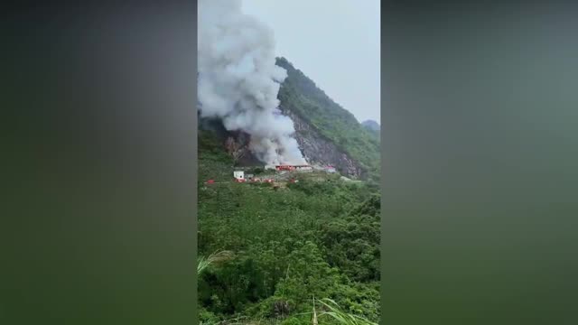 Local media reported that a freak rockfall triggered the blast after a large boulder tumbled downhill and struck the Julong Fireworks and Firecrackers Warehouse in Donglan, China. 2025-06-16 13:03:15