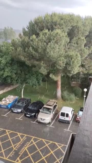 Footage captured by a local, Maria Sanchez, shows golf ball-sized hailstones pelting her neighbourhood as winds whipped nearby trees in Collado Villalba. 2025-06-14 14:54:08