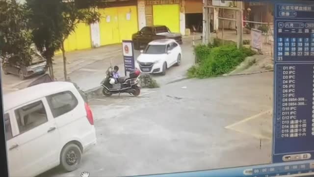 CCTV footage shows the white hatchback manoeuvring on the driveway when it ran over the plastic bottle lying on the pavement in Guizhou, China. 2025-09-11 13:39:33