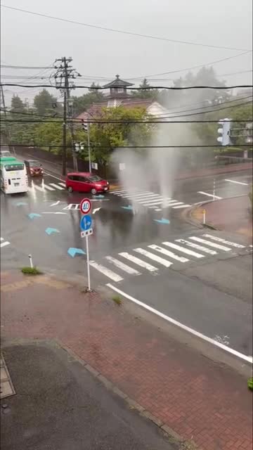 Footage shows water gushing out of the underground access point as an intense downpour caused sewage pipes to overflow in Niigata City on September 10. 2025-09-11 14:41:53