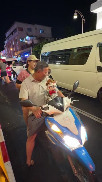 Onlooker Stephen Mamusung noticed the rider with his motionless white cat sitting comfortably at the front of the vehicle, while its sibling rode pillion with a passenger on a busy road. 2025-09-11 14:41:31
