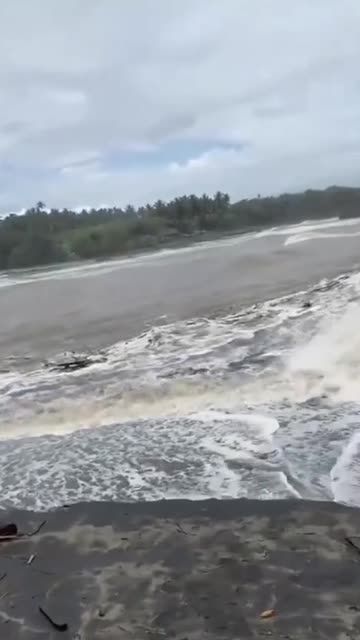 Footage shows the white building tilting on the edge of the bank as strong currents struck the land in East Selemadeg, Tabanan Regency. 2025-09-11 14:39:48