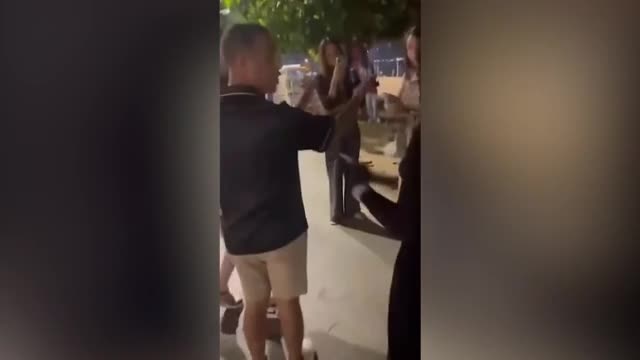 Footage shows the drunk men squaring off against the dress-wearing hookers along the city's infamous Beach Road in the early hours of Monday morning. 2025-05-21 22:31:05