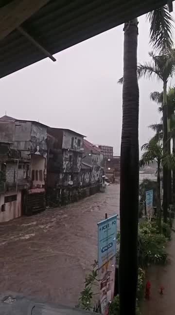 Footage shows a three-storey home crumbling along the banks of the Badung River in Denpasar on Wednesday, September 10, under a gloomy sky. 2025-09-10 15:23:01