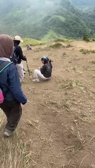 The group of mountaineers were descending the steep slope in Magetan Regency, Indonesia, when one of them suddenly lost control as she dashed downhill. 2025-09-10 11:57:44