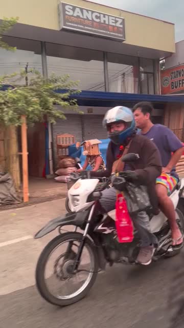 Lea Ian Engbino noticed the bike rider manoeuvring in the outer lane, proudly parading the wooden avian shelter as his headgear in Davao del Sur, the Philippines. 2025-09-10 11:58:47