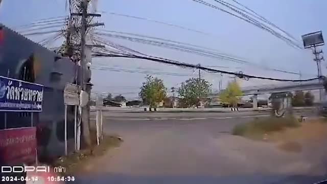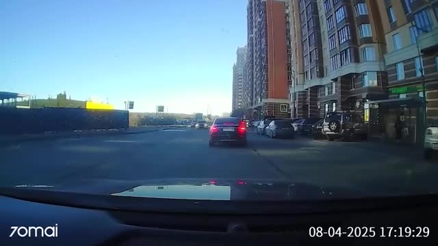 Dashcam footage shows the black sedan manoeuvring on the road when the speeding two-wheeler collided with the car in St Petersburg, Russia. 2025-04-13 10:44:22
