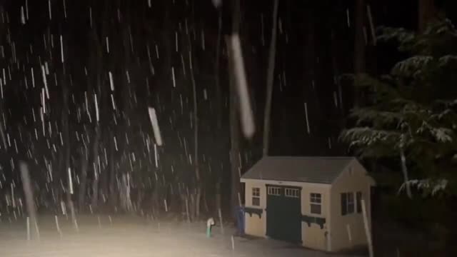 Footage shows snow-laden ground outside a shed in Tolland on April 11. Joey, a resident and meteorologist, recorded the scene outside his property at 1:30 am. 2025-04-13 10:56:17